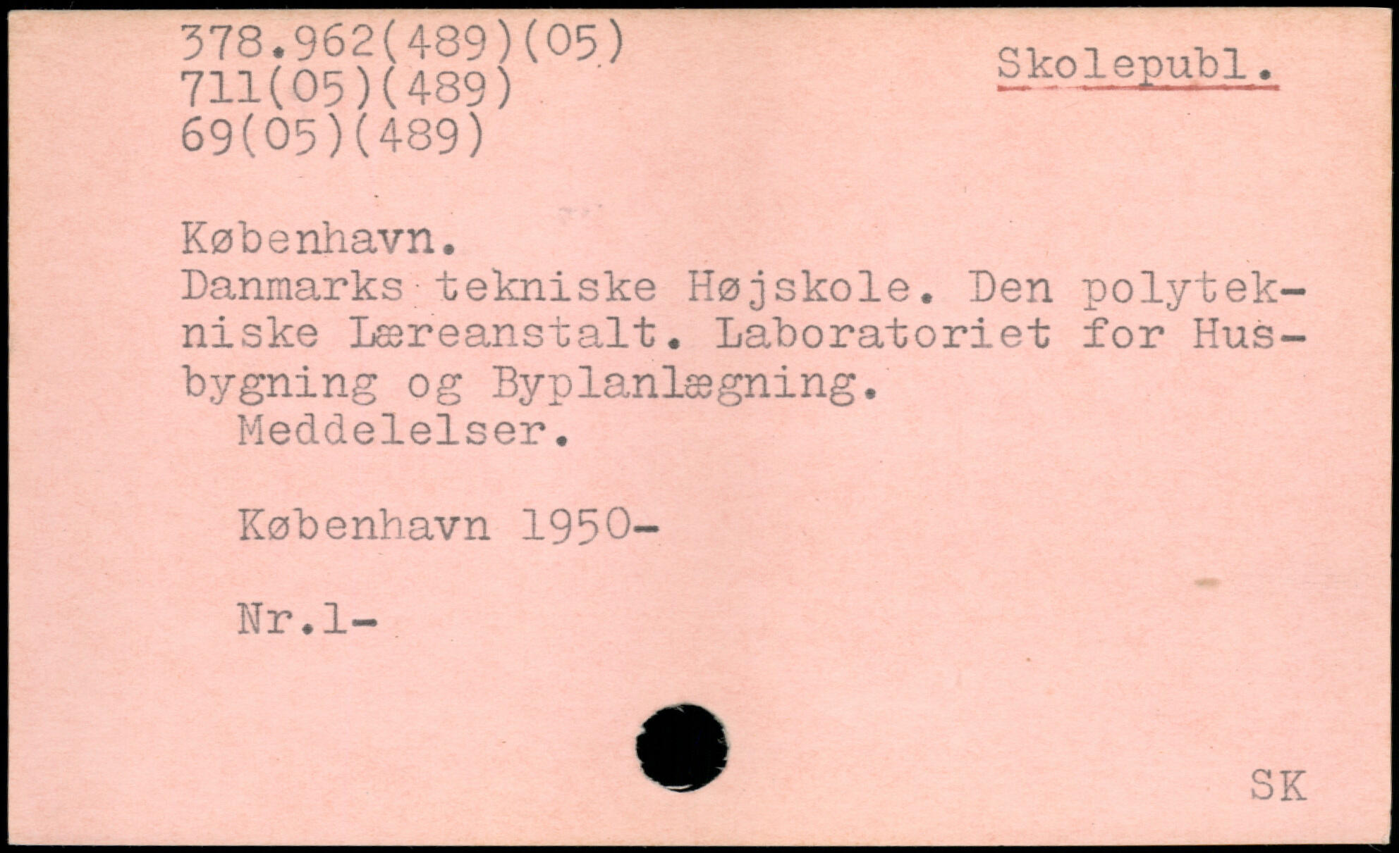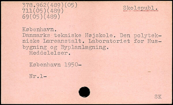 Danmarks tekniske Højskole. Den polytekniske Læreanstalt. Laboratoriet for Husbygning og Byplanlægning. Meddelelser.
