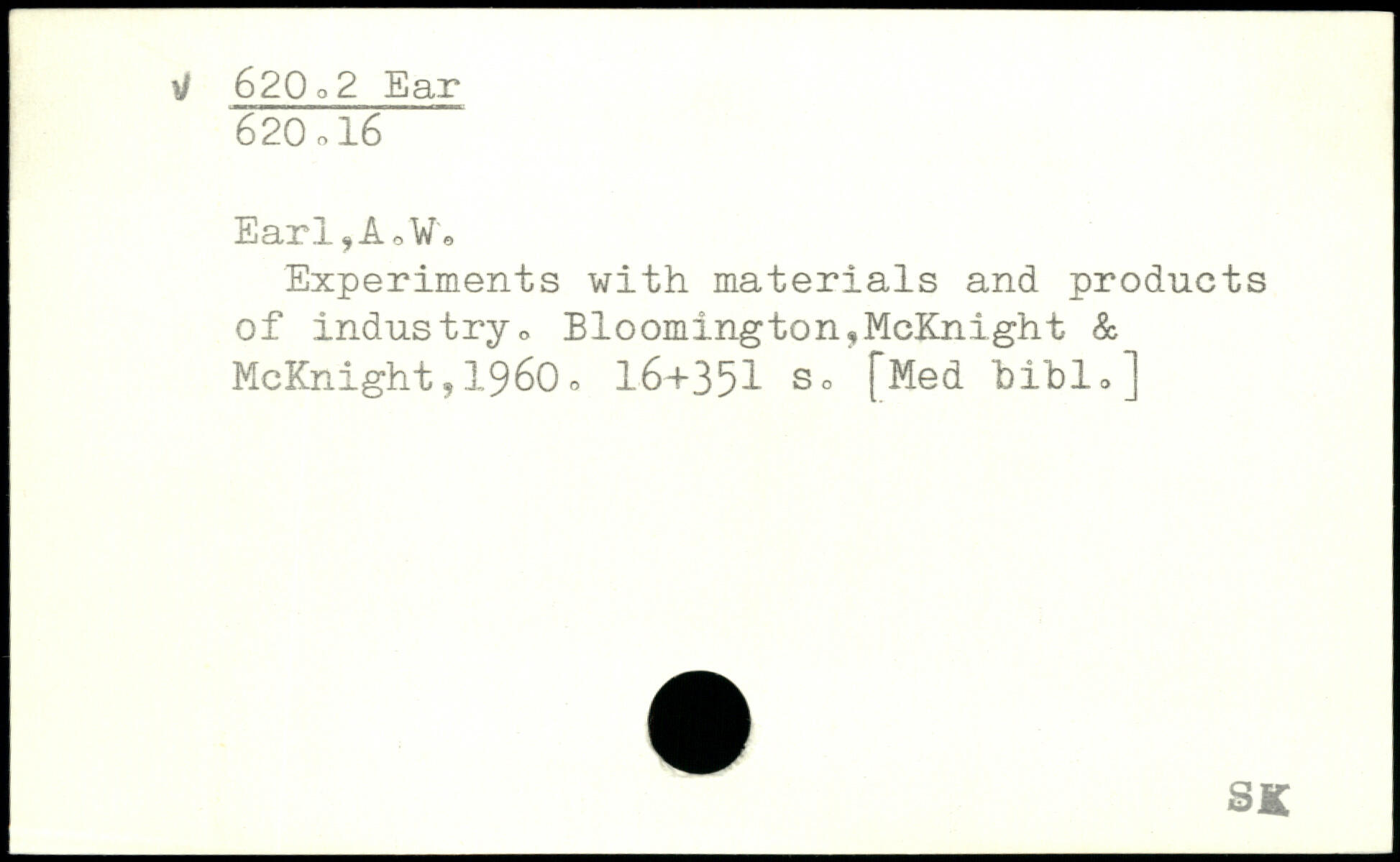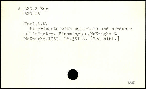Earl,A,Vo Experiments with materials and products of industry,. Bloomington,McKni.ght & McKnight,1960o