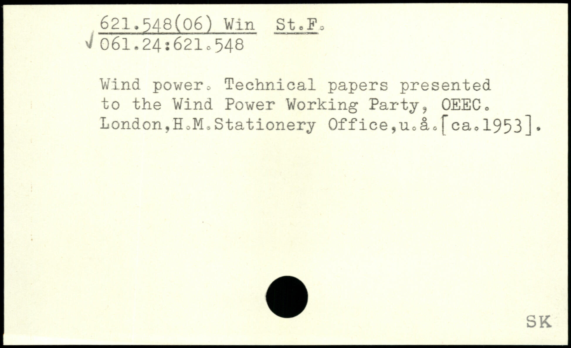Wind power,, Technical papers presented to the Wind Power Working Party, OEEC, London,HJ,Stationery Office,n0a0fca<.1953]