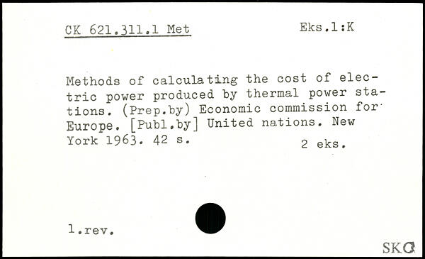 Methods of calculating the cost of electric power produced by thermal power stations. (Prep.by) Economic commission for Europe.