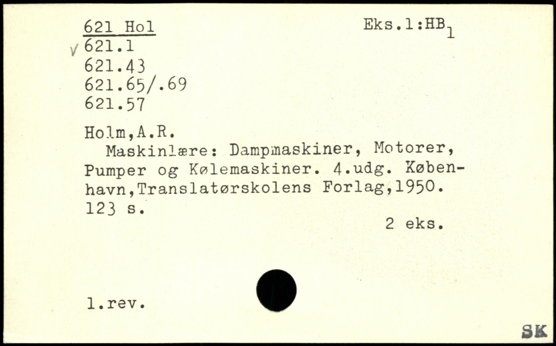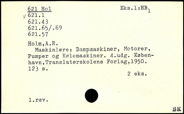 Maskinlære: Dampmaskiner, Motorer, Pumper og Kølemaskiner. 4,udg. København, Trans lat ør skolens Forlag,1950