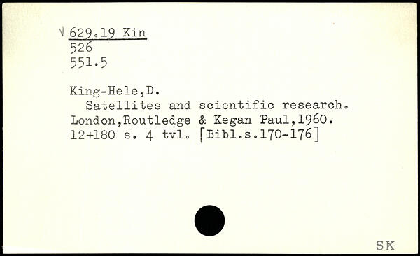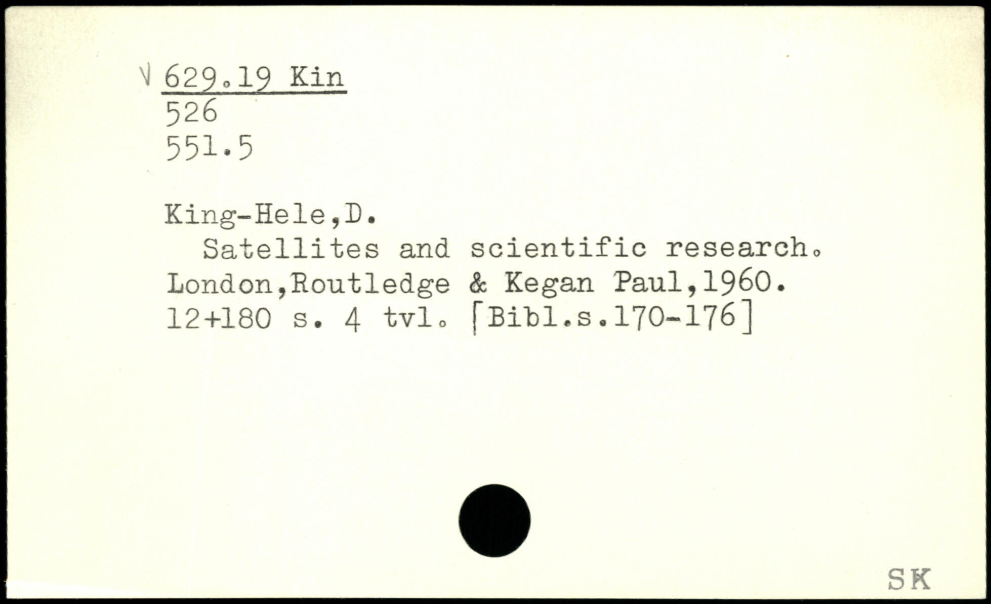 Satellites and scientific research, London,Routledge & Kegan Paul,1960. 12+180 s. 4 tvlo [BiLl.s.170-176]