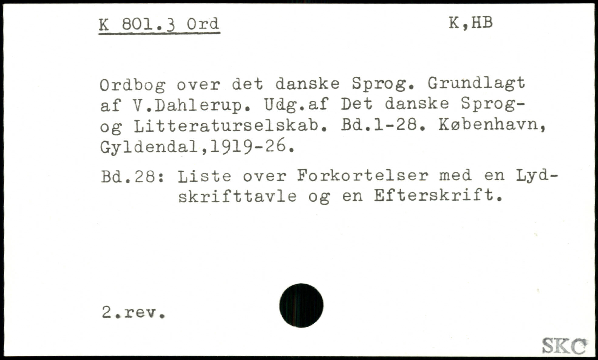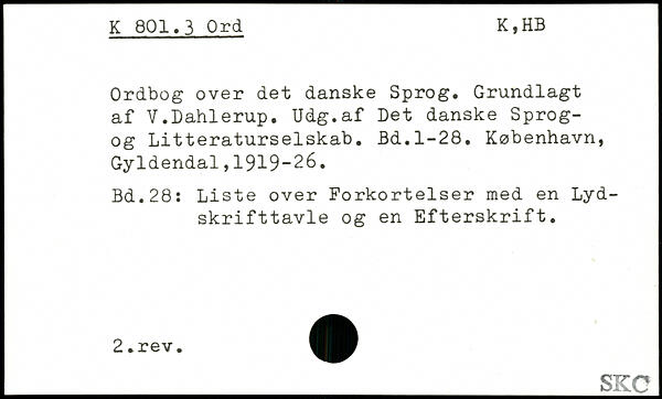 Ordbog over det danske Sprog. Grundlagt af V.Dahlerup. Udg.af Det danske Sprog-og Litteraturselskab.