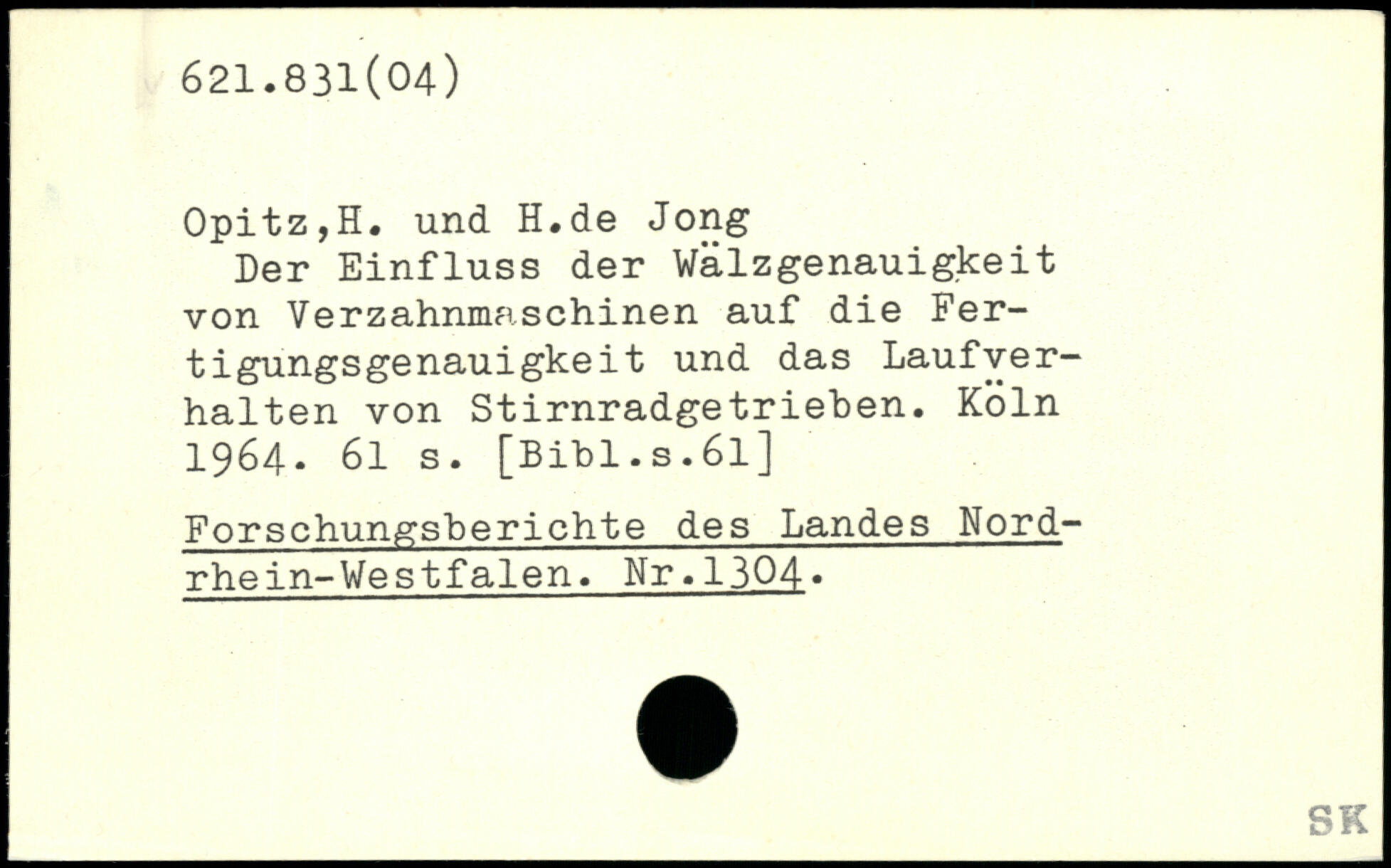 Opitz,H. und H.de Jong Der Einfluss der Wälzgenauigkeit von Verzahnmaschinen auf die Fertigungsgenauigkeit und das Laufverhalten von Stirnradgetrieben.