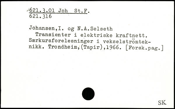 Transienter i elektriske kraftnett. Saerkursf orelesninger i vekselstromtek-nikk. Trondheim,(Tapir),1966. [Porsk.pag.]
