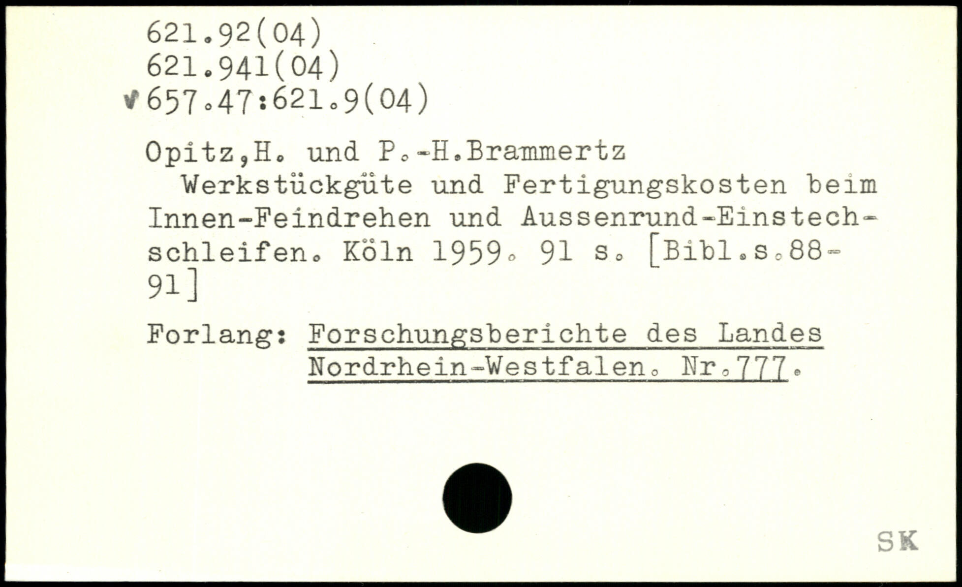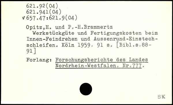 Opitz,H. und P.,H.Brammertz Werkstückgüte und Fertigungskosten beim Innen-Feindrehen und Aussenrund-Einstech-schleifen.