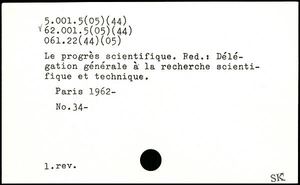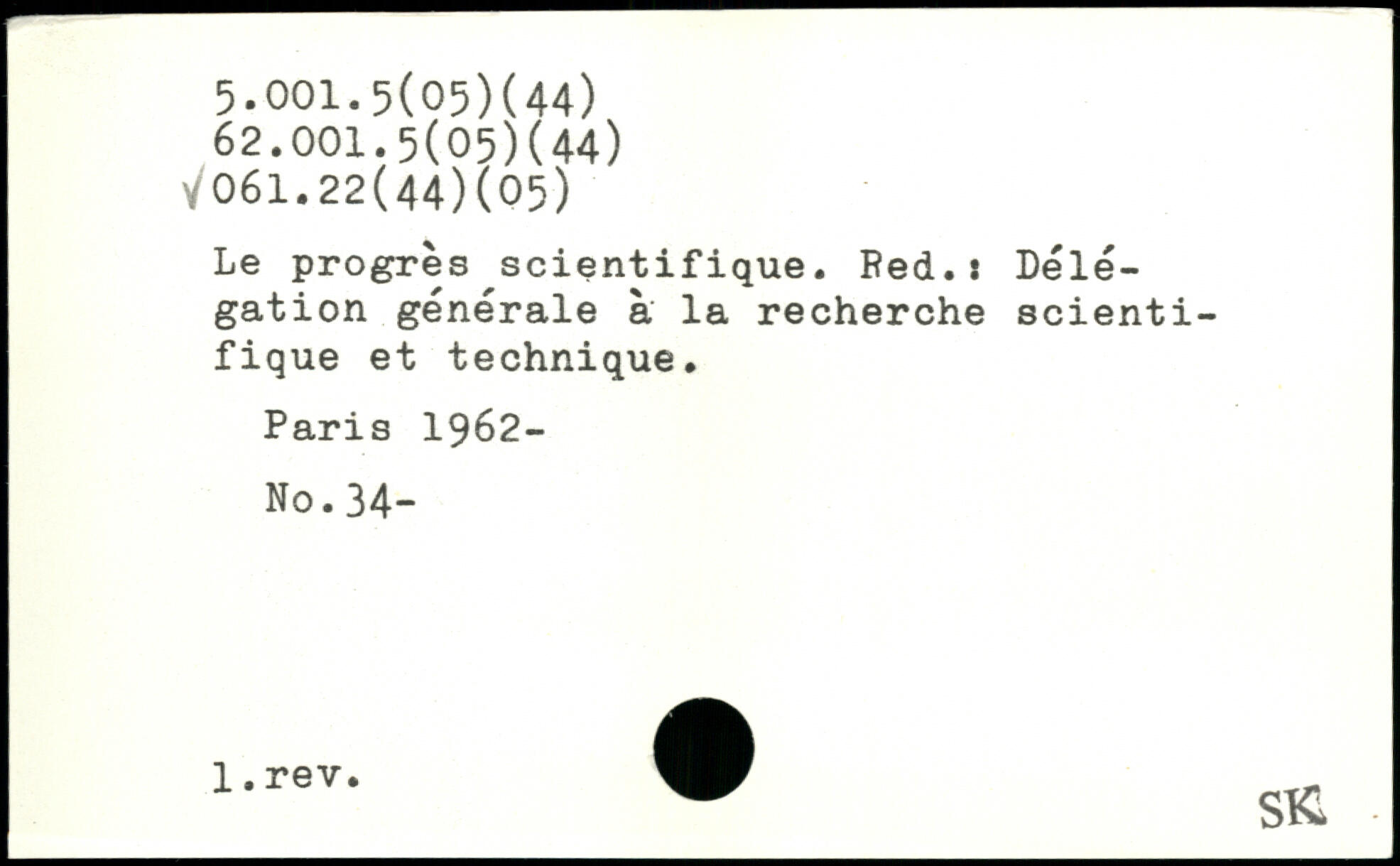 Le progrès scientifique. Bed.: Délégation générale à la recherche scientifique et technique.