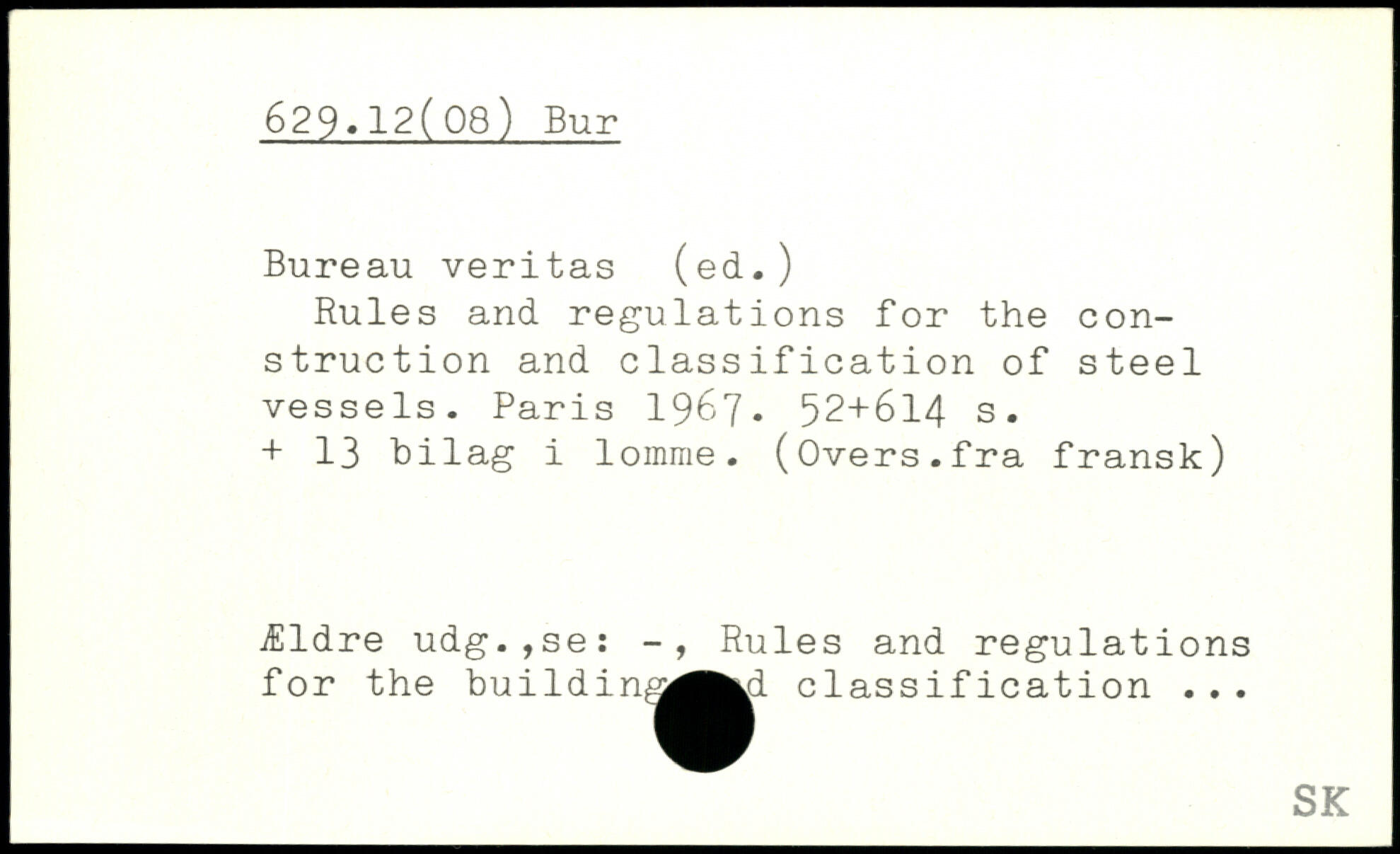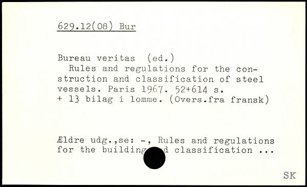 Bureau veritas (ed.) Rules and regulations for the construction and classification of steel vessels. Paris 196?.