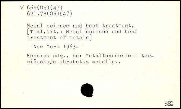 Metal science and heat treatment.