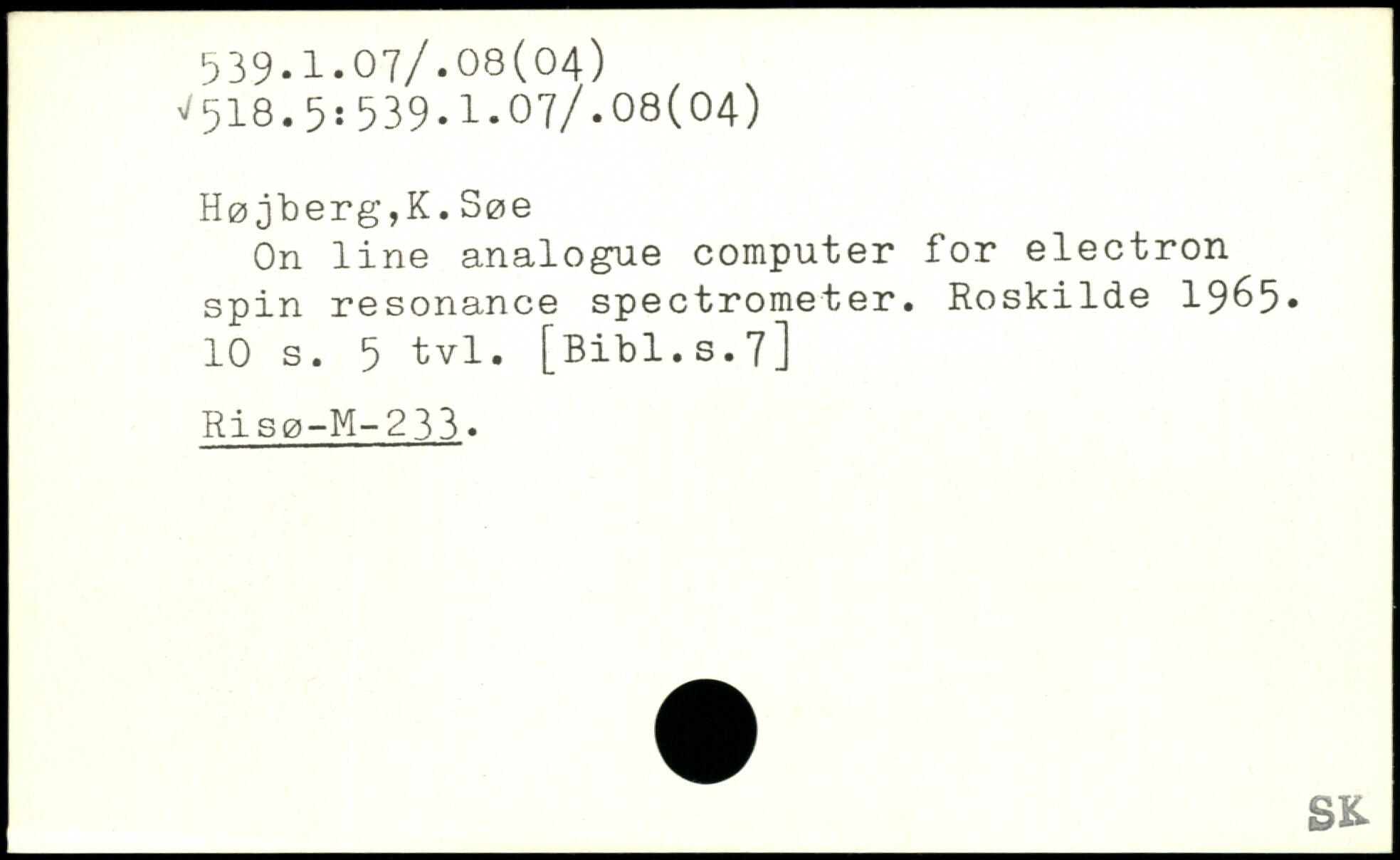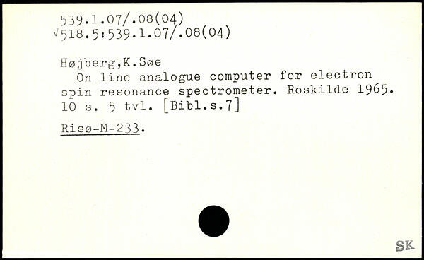 H0jberg,K.See On line analogue computer for electron spin resonance spectrometer. Roskilde 1965