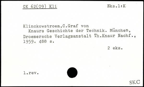 Klinckowstroem,C.Graf von Knaurs Geschichte der Technik. München, Droemersche Verlagsanstalt Th.Knaur Nachf., 1959.