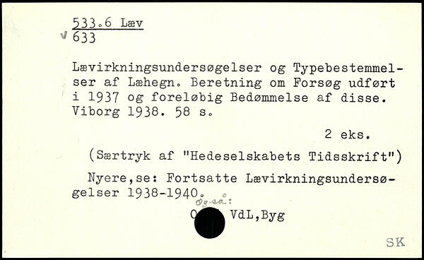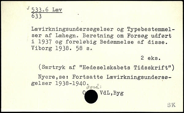 Lævirkningsundersøgelser og Typebestemmelser af Læhegn, Beretning om Forsøg udført i 1937 og foreløbig Bedømmelse af disse. Viborg 1938.