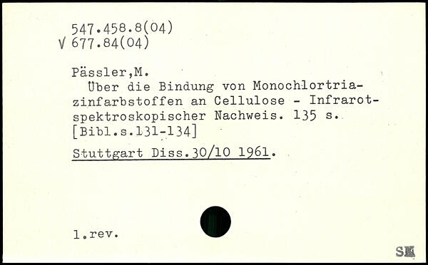 über die Bindung von Monochlortriazinfarbstoffen an Cellulose - Infrarotspektroskopischer Nachweis.