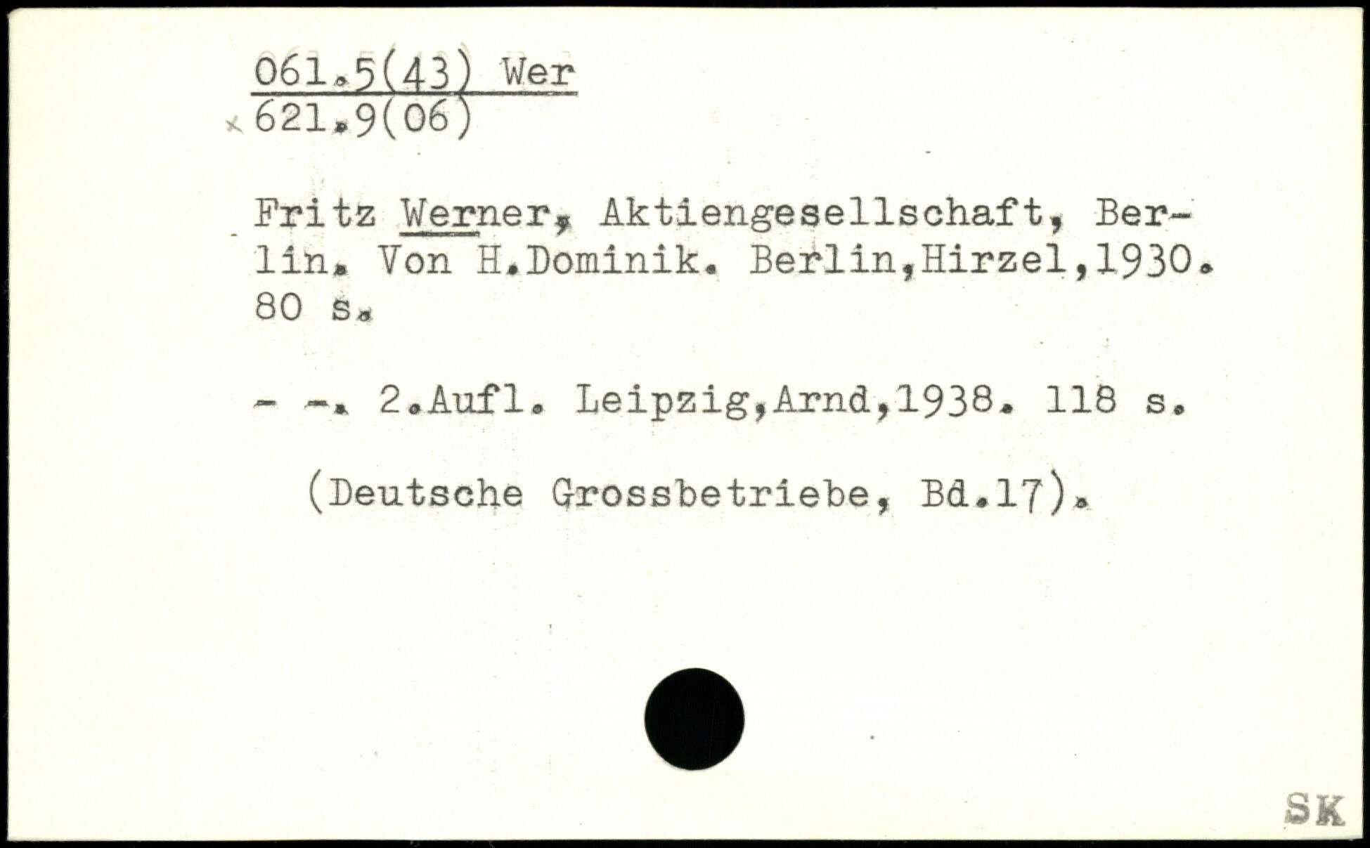 Fritz Werner, Aktiengesellschaft, Berlin. Von H.Dominik.