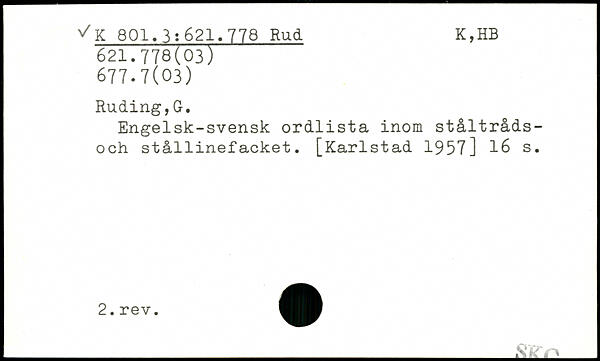 Engelsk-svensk ordlista inom ståltråds-och stållinefacket. [Karlstad 1957]