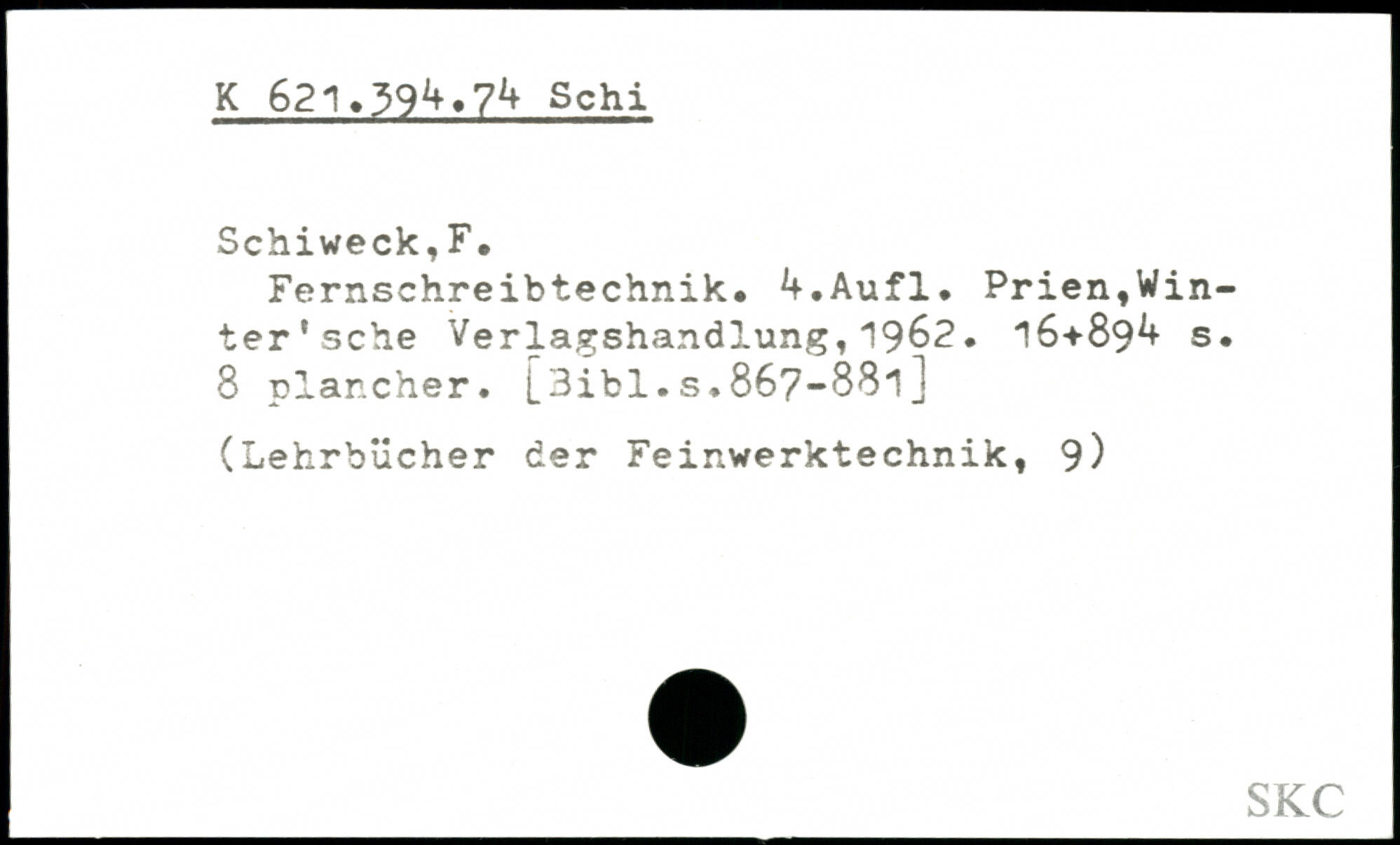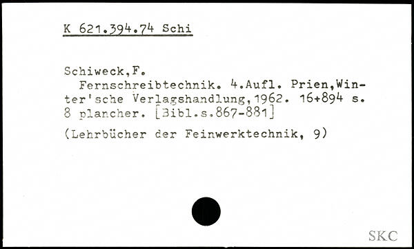 Fernschreibtechnik. J+.Aufl. Prien,Winter’sehe Verlagshandlung,1962. 16+89^ s. 8 plancher. j_3ifcl. s, 867-881 ]