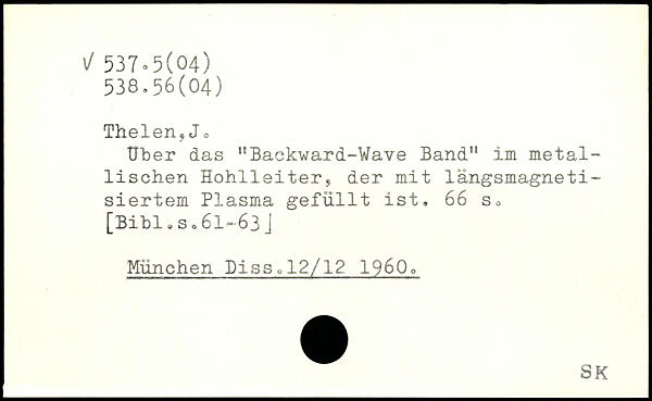 Uber das "Backward-Wave Band" im metallischen Hohllei ter, der mit längsmagnetisiertem Plasma gefüllt ist.