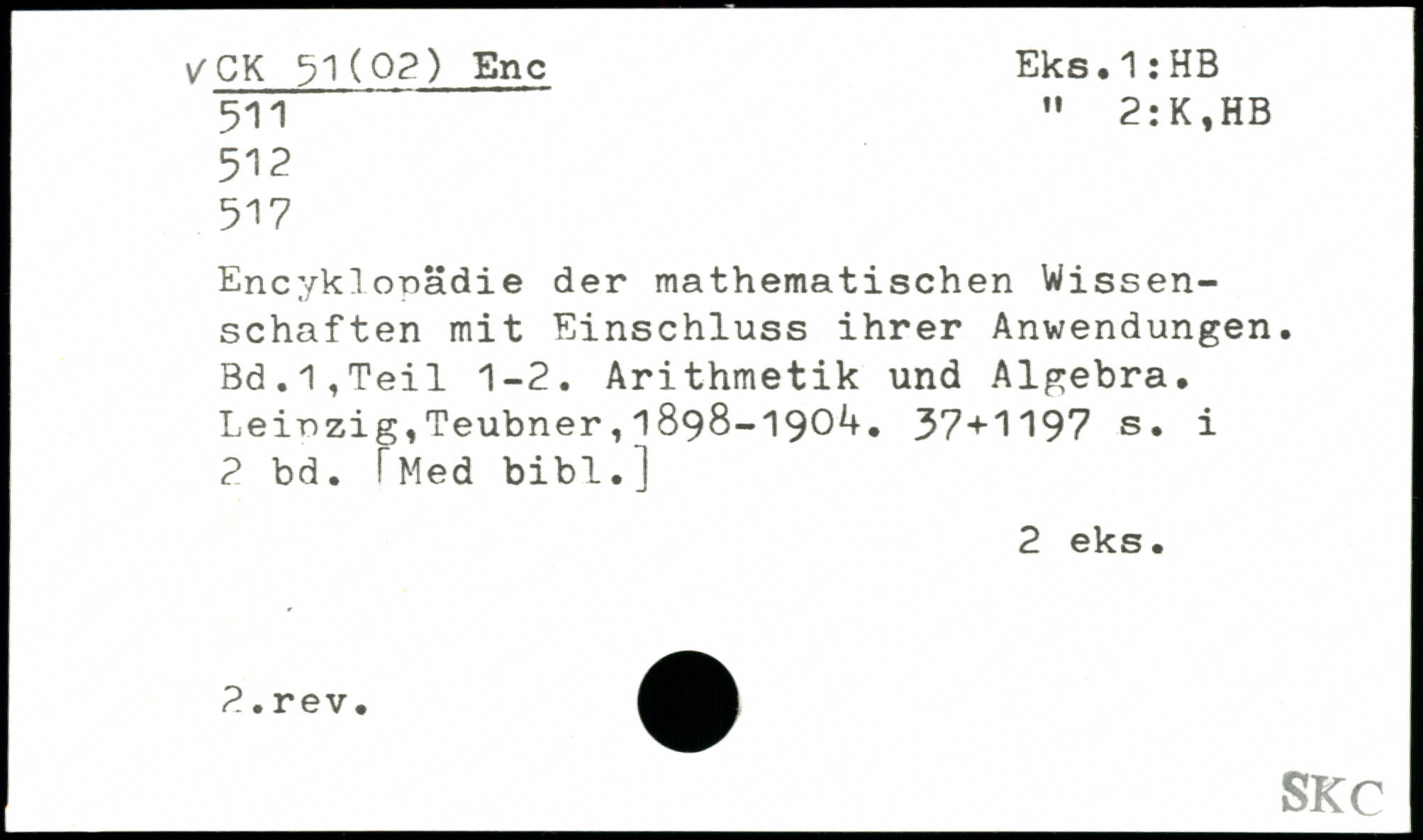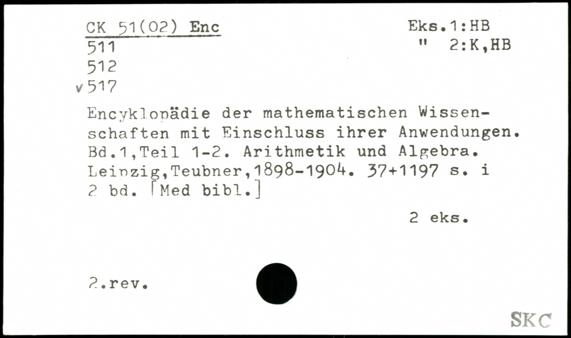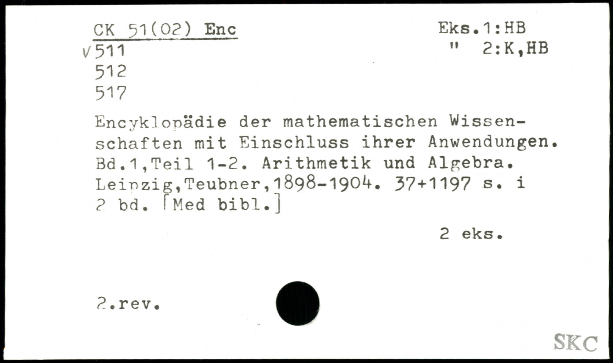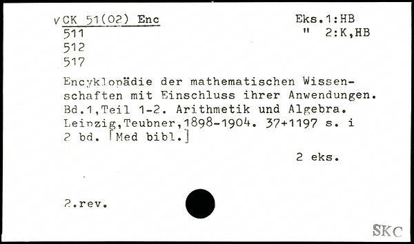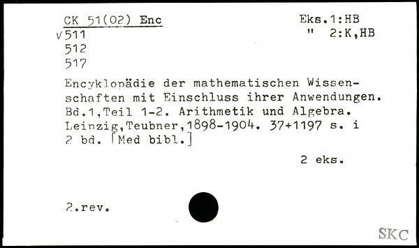 Encyklonädie der mathematischen Wissenschaften mit Einschluss ihrer Anwendungen.