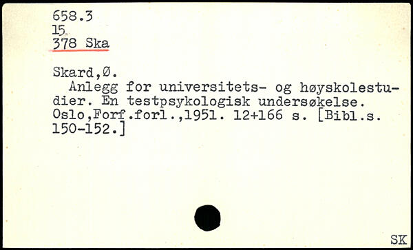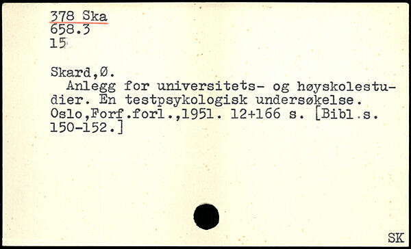 Anlegg for universitets- og høyskolestu-dier. En testpsykologisk undersøkelse. Oslo,Eorf.forl.,1951.