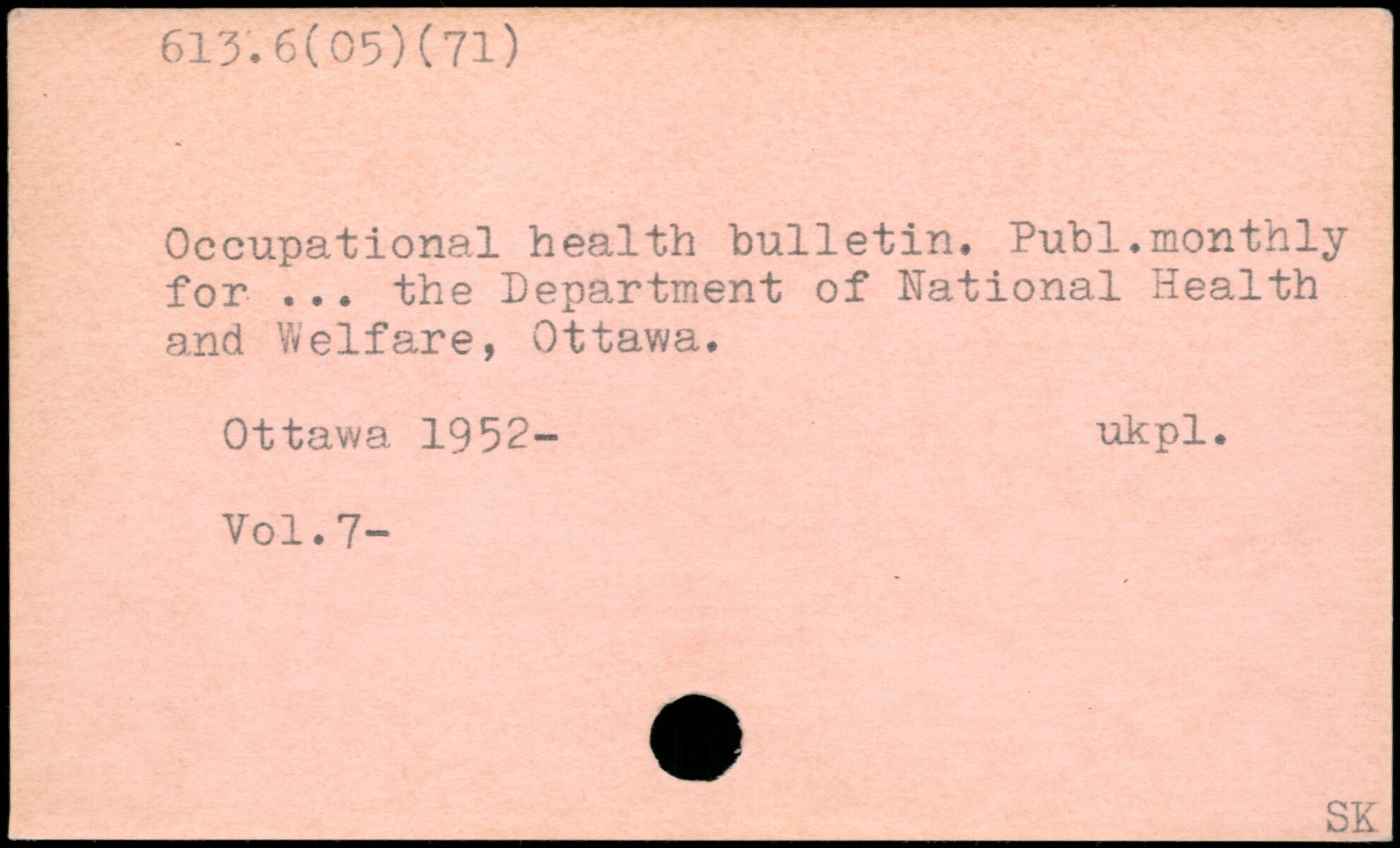 Occupational health bulletin. Publ.monthly for ... the Department of National Health and Welfare, Ottawa.