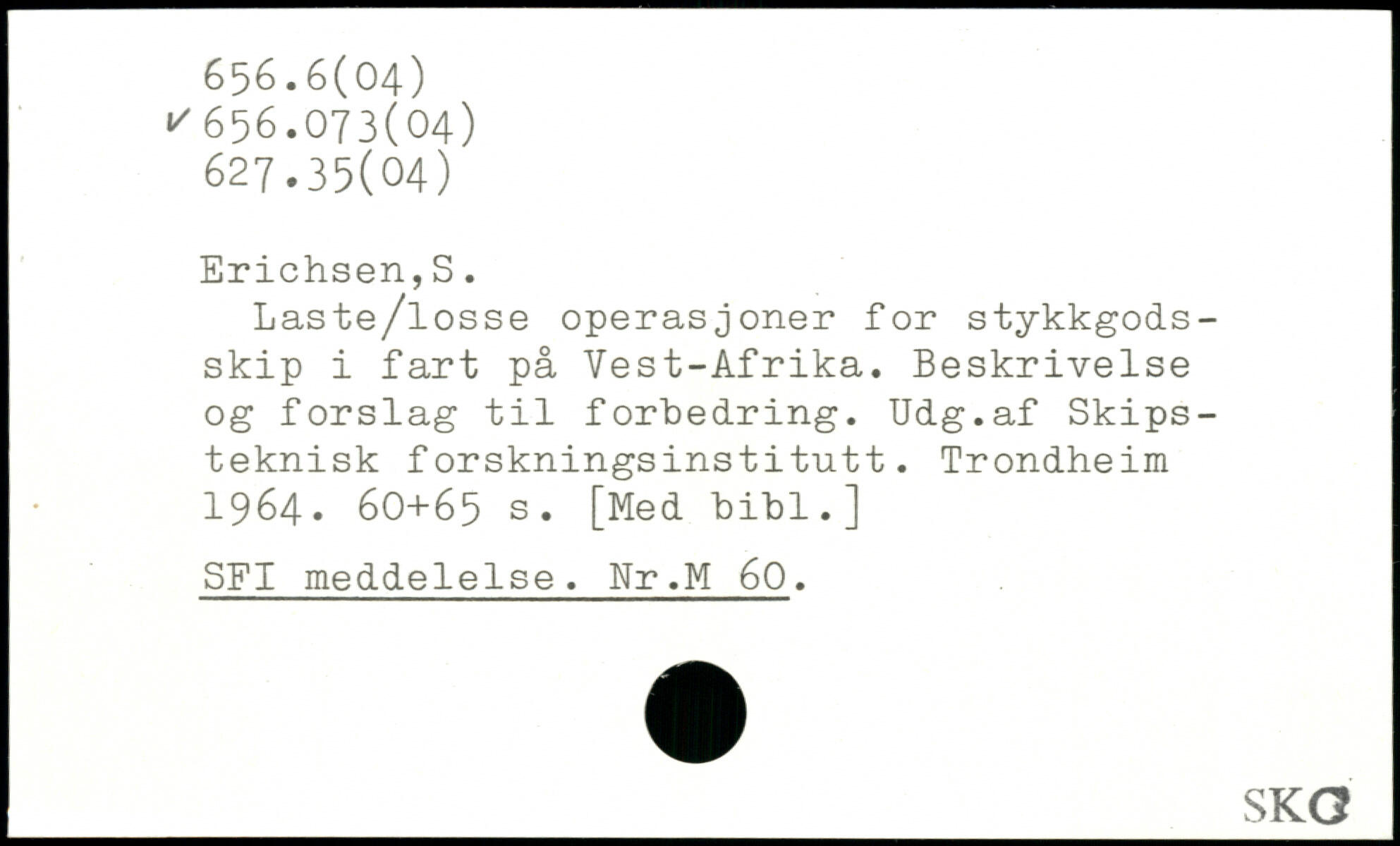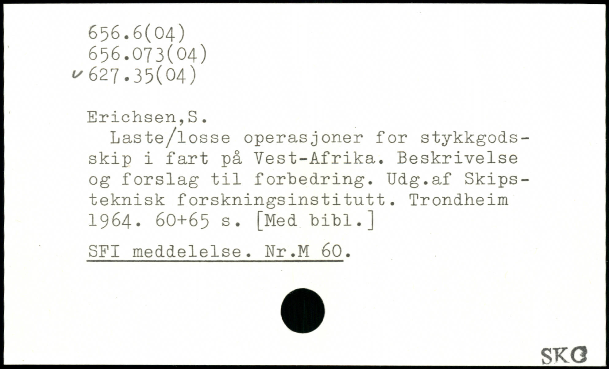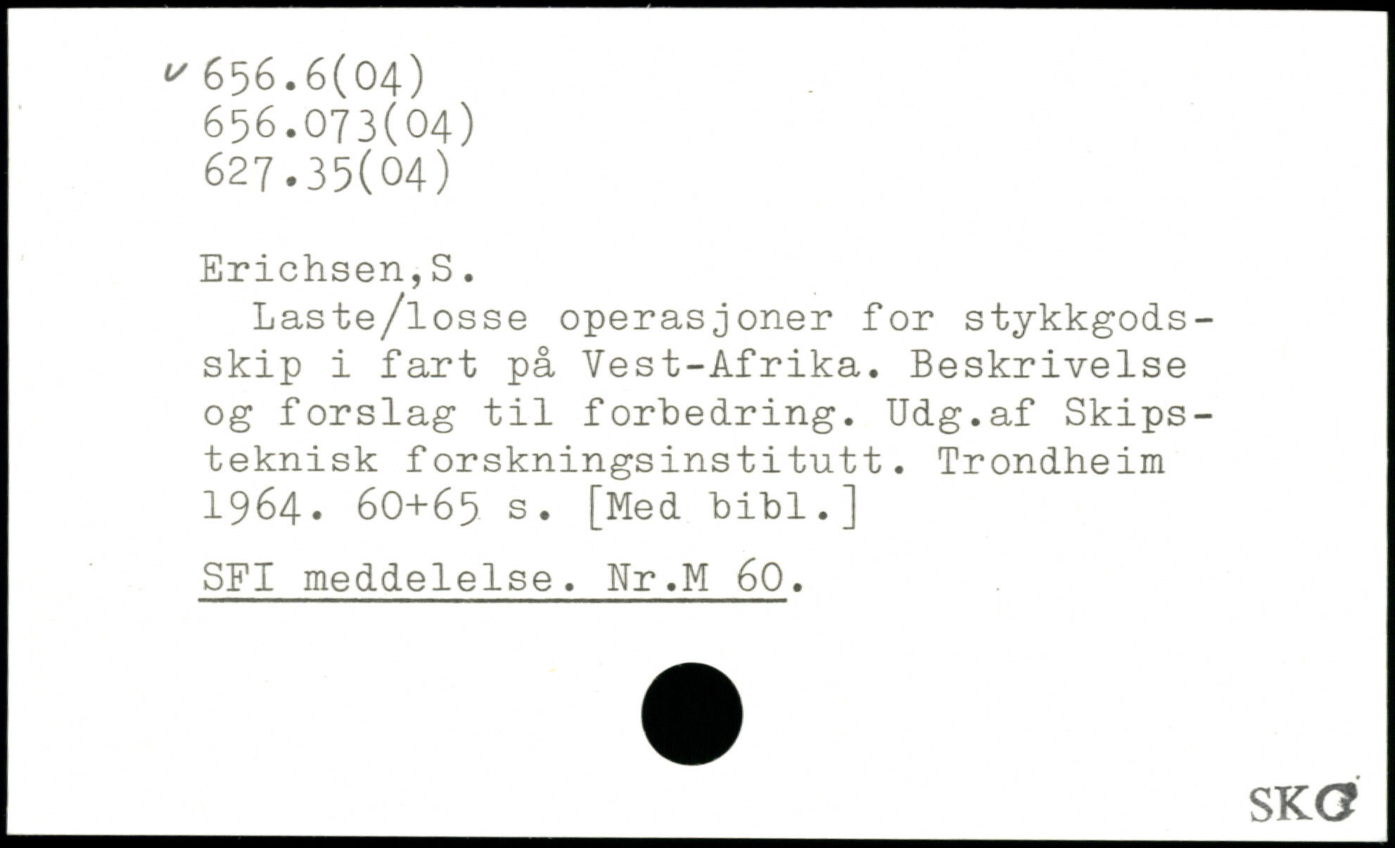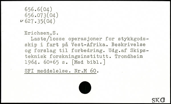 Laste/losse operasjoner for stykkgods-skip i fart på Vest-Afrika. Beskrivelse og forslag til forbedring. Udg.af Skips-teknisk forskningsinstitutt.