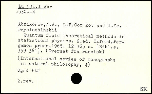 Abrikosov,A.A., L.P.Gor'kov and I.Ye. Lzyaloshinskii Quantum field theoretical methods in statistical physics.