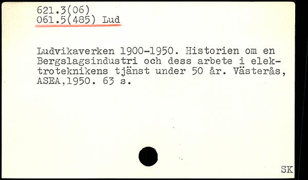 Ludvikaverken 1900-1950. Historien om en H Bergslagsindustri ooh dess arbete i elek- H troteknikens tjänst under 50 år. Västerås, H ASEA,1950.