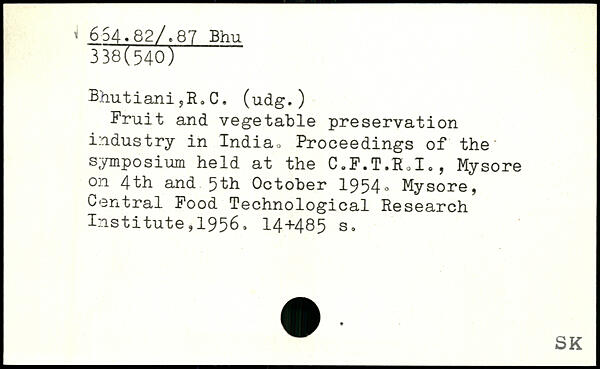 Fruit and vegetable preservation industry in India,, Proceedings of the symposium held at the C.F.T.Rd. , Mysore on 4th and 5^h October 1954. Mysore, Central Food Technological Research Institute,1956.