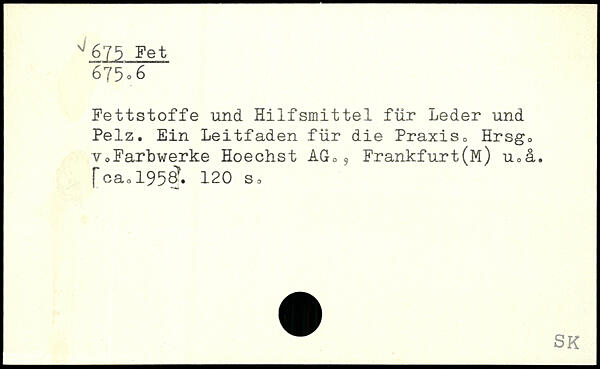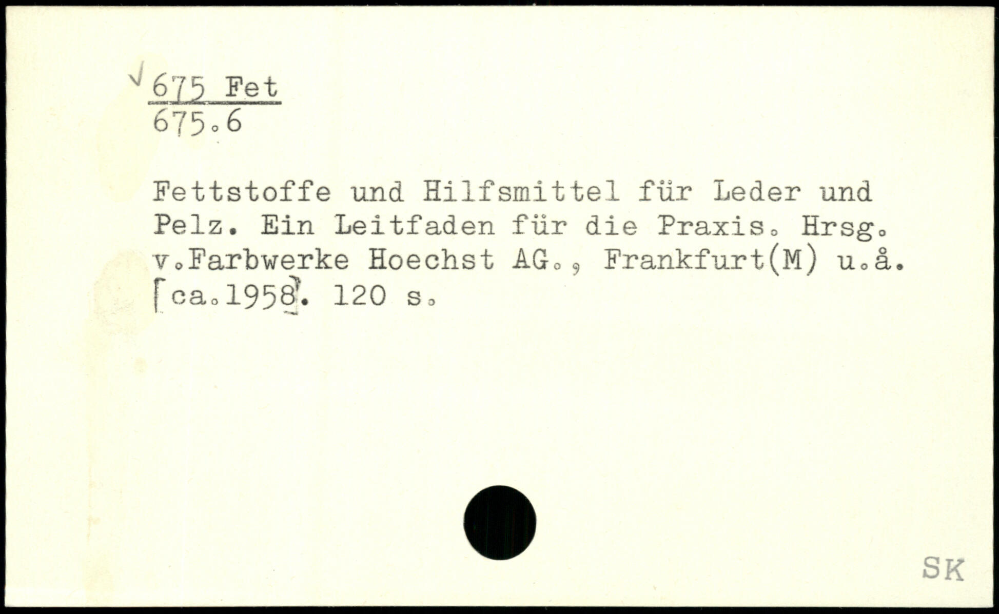 Fettstoffe und Hilfsmittel für Leder und Pelz. Ein Leitfaden für die Praxis, Hrsg. VoFarbwerke Hoechst AG0, Frankfurt(M) u.a. foa.l95f.