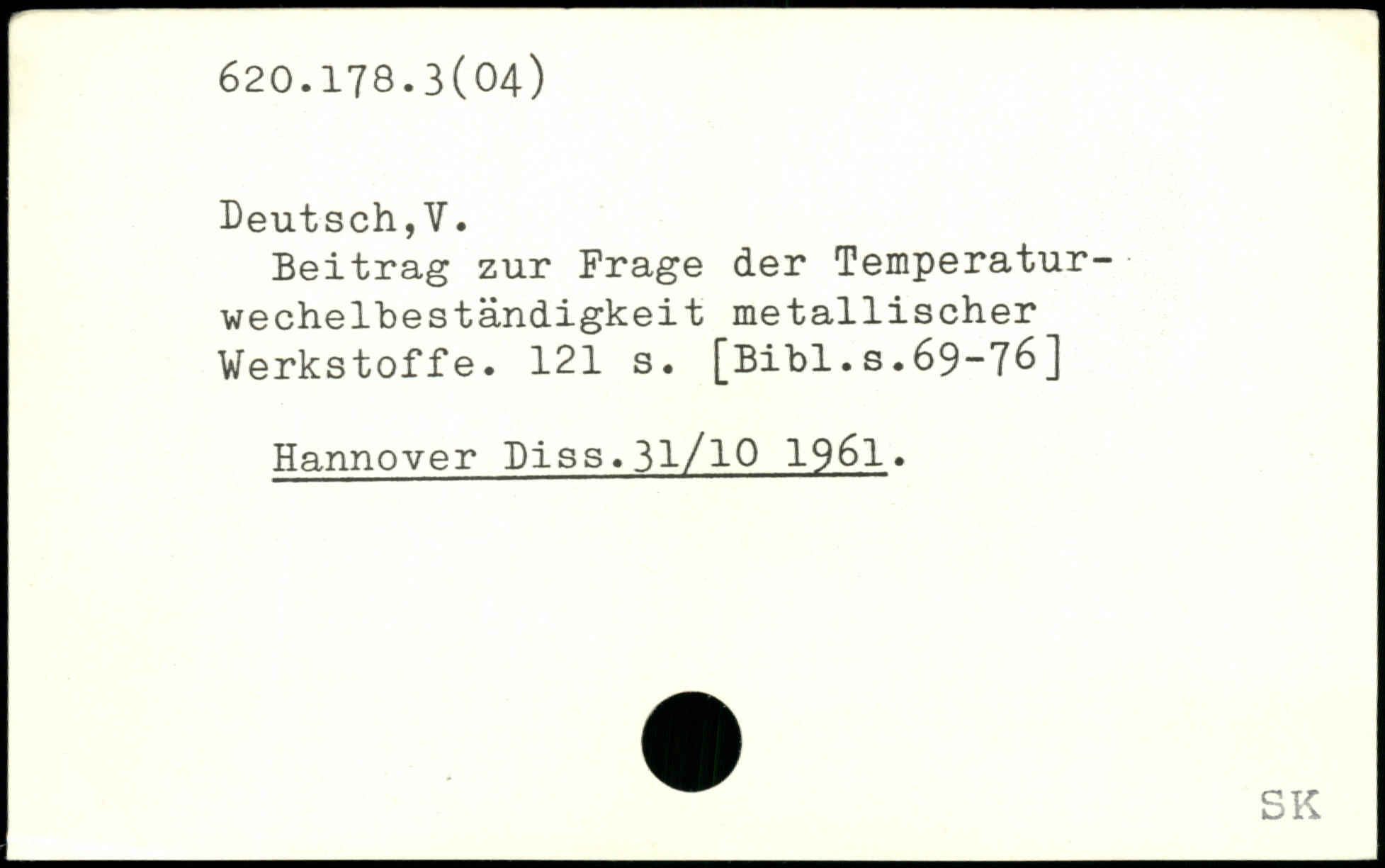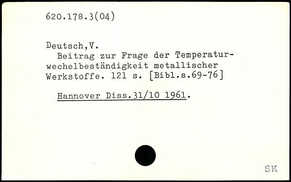 Beitrag zur Frage der Temperatur-wechelbeständigkeit metallischer Werkstoffe.