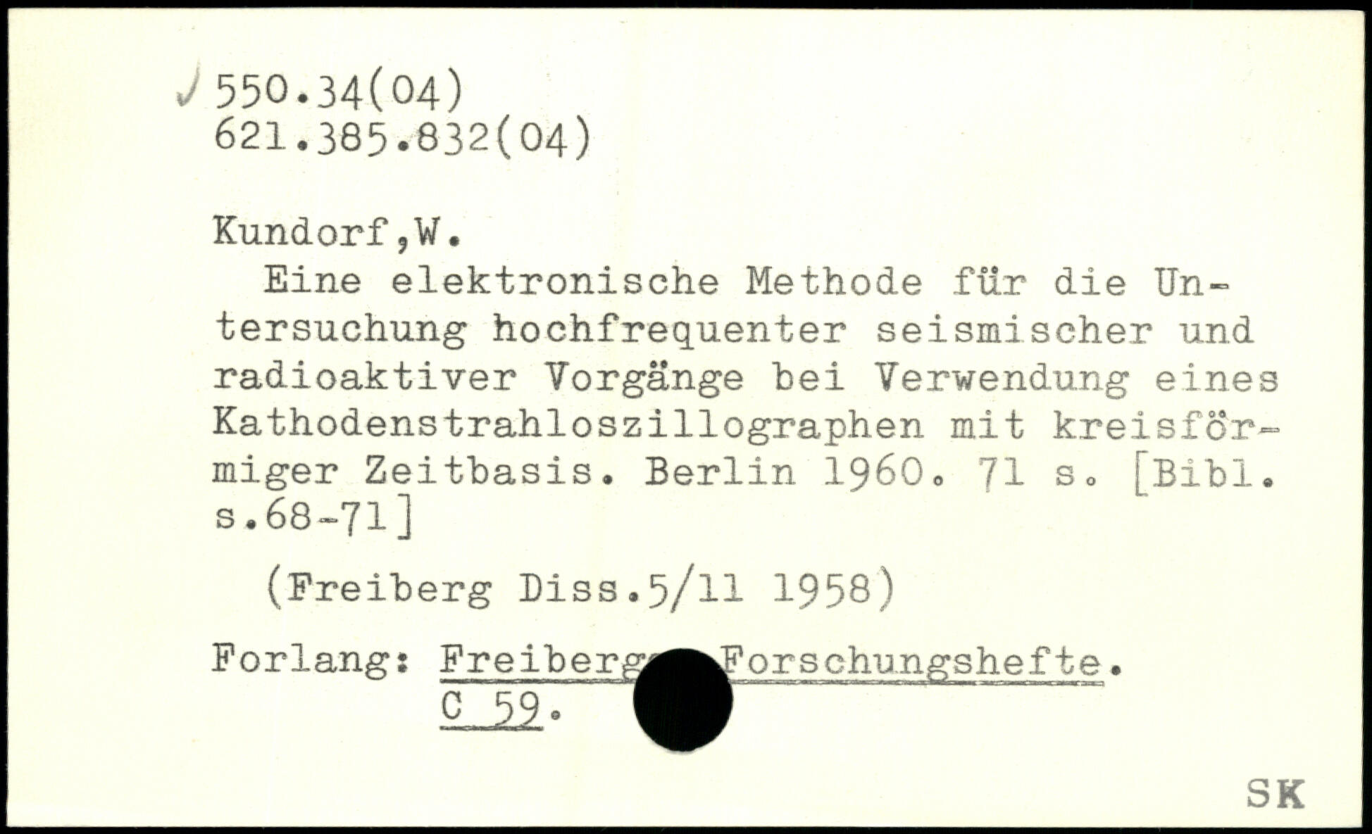 Eine elektronische Methode für die Untersuchung hochfrequenter seismischer und radioaktiver Vorgänge bei Verwendung eines Kathodenstrahloszillographen mit kreisförmiger Zeitbasis.