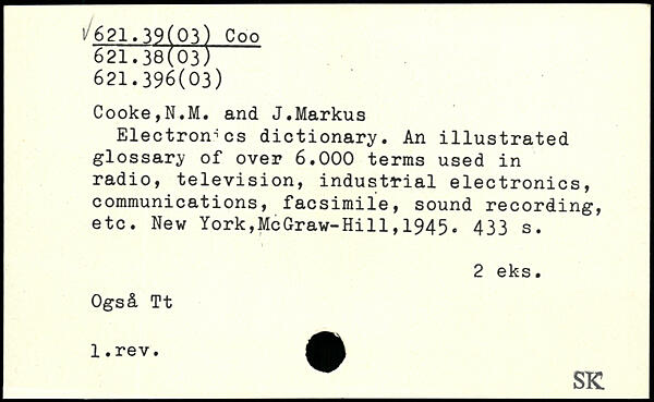Electronics dictionary. An illustrated glossary of over 6.000 terms used in radio, television, industrial electronics, communications, facsimile, sound recording, etc.