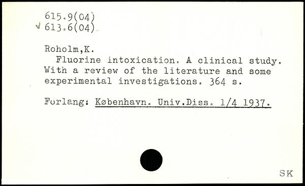 Fluorine intoxication, A clinical study. With a review of the literature and some experimental investigations.