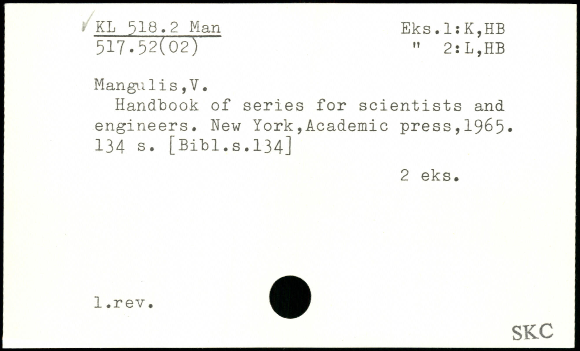 Handbook of series for scientists and engineers.