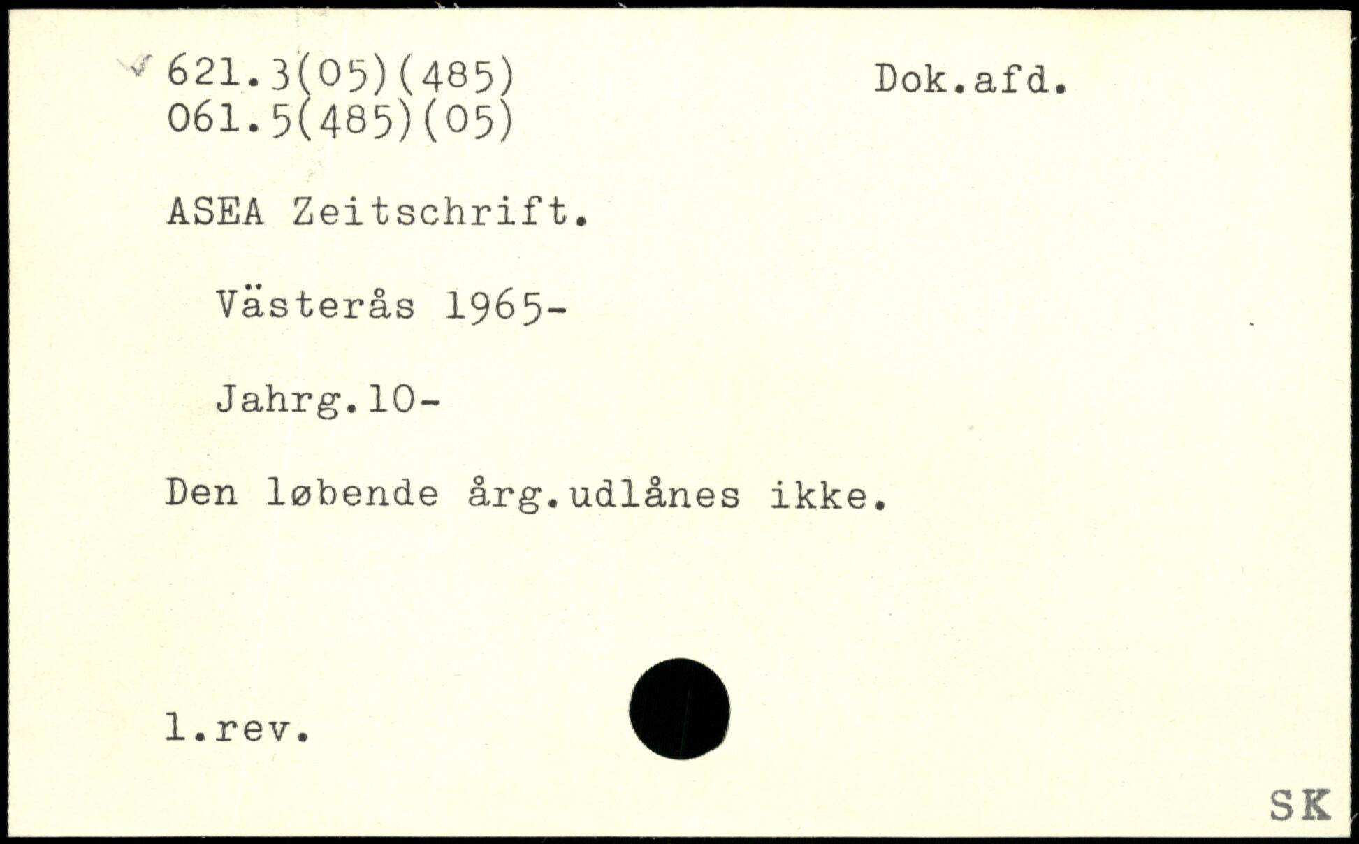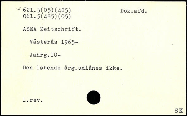 ASEA Zeitschrift. Västerås 1965-Jahrg.10- Den løbende årg.udlånes ikke. __