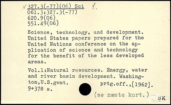 Science, technology, and development. United States papers prepared for the United Nations conference on the application of science and technology for the benefit of the less developed areas. Vol.lïNatural resources. Energy, water and river basin development. Washington, U.S.gvmt. prtg.off. ,[1962].