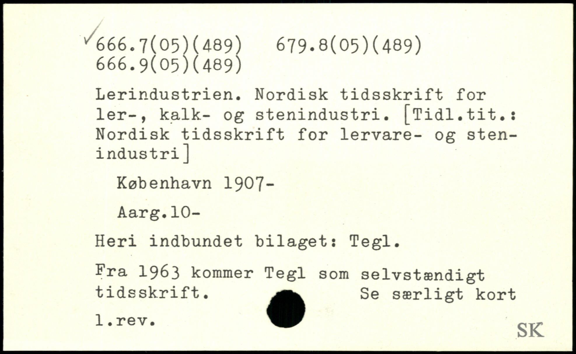 Lerindustrien. Nordisk tidsskrift for ler-, kalk- og stenindustri.