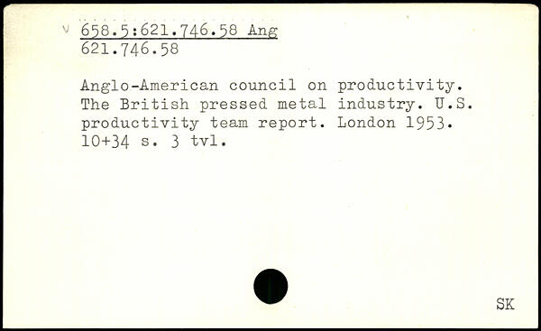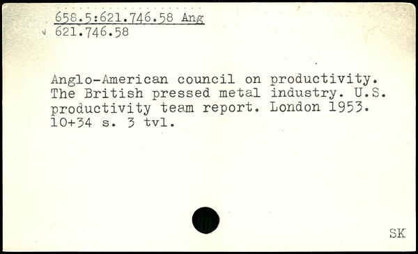 Anglo-American council on productivity. The British pressed metal industry. U.S. productivity team report.