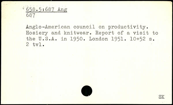 Anglo-American council on productivity. Hosiery and knitwear. Report of a visit to the U.S.A. in 1950.
