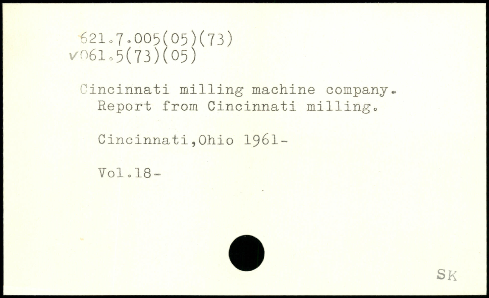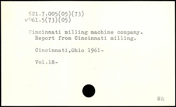 Cincinnati m1111ng machine company. Report from Cincinnati m1111ngo Cincinnati,Ohio 1961-