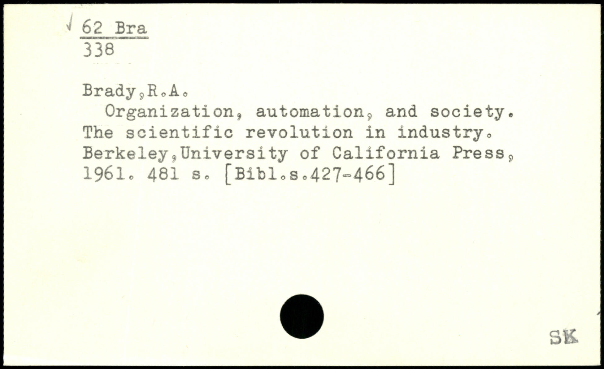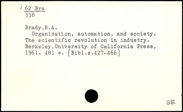Organization. automations, and society. The scientific revolution in industry. Berkeley,University of California Pressp 1961.