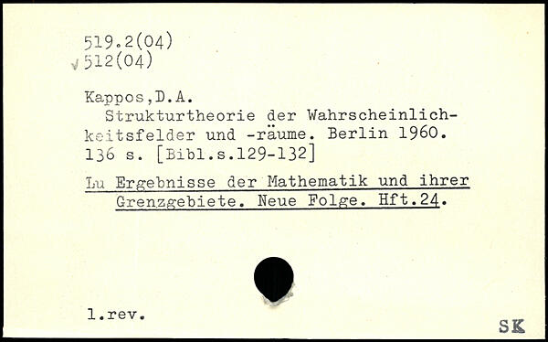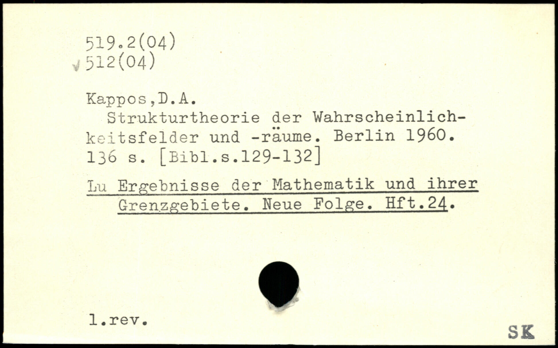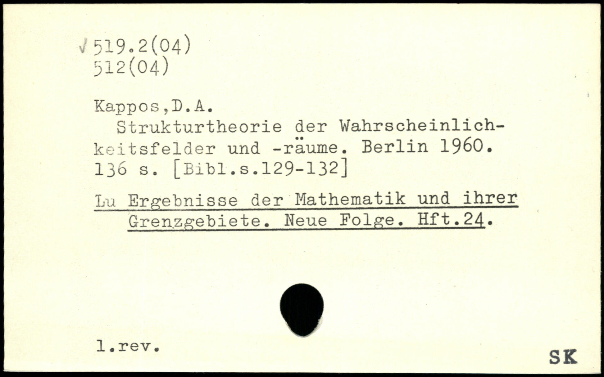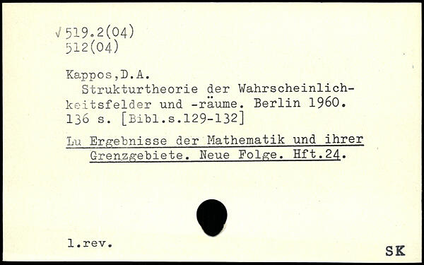 Strukturtheorie der Wahrscheinlichkeitsfelder und -raume.