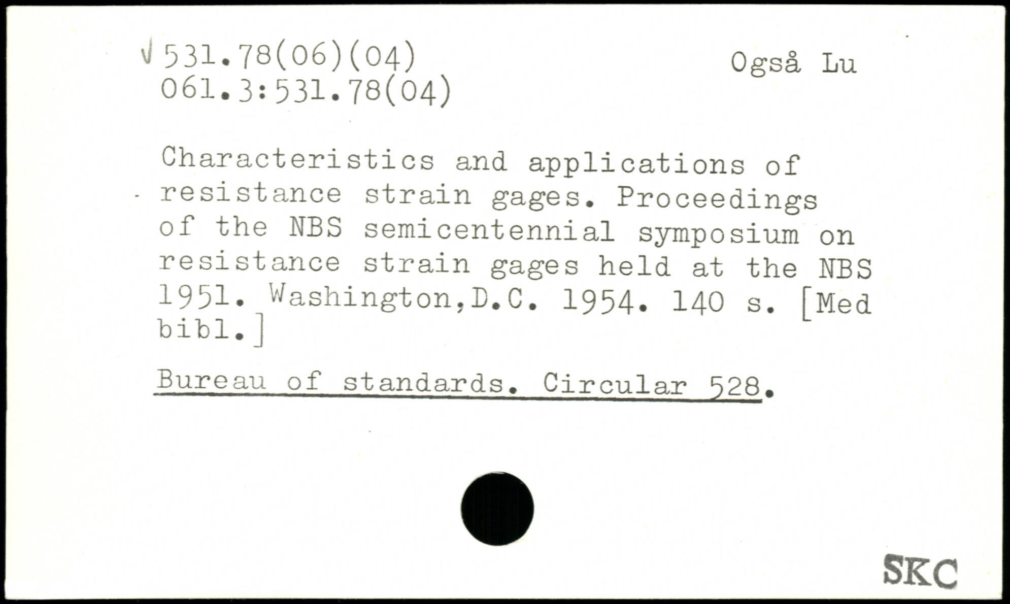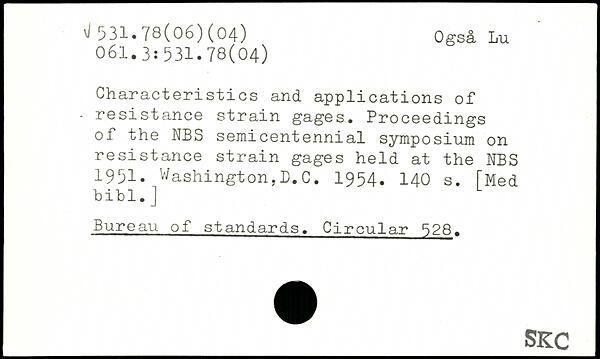 Characteristics and applications of - resistance strain gages. Proceedings of the NBS semicentennial symposium on resistance strain gages held at the NBS 1951. Washington,D.C. 1954.