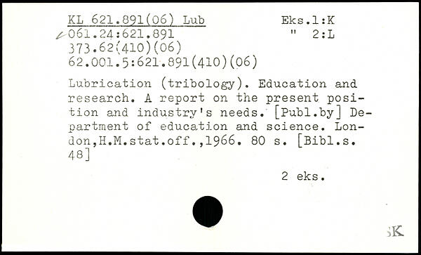 UDK: 621.891(06) Lub, 061.24:621.891, 373.62(410)(06)