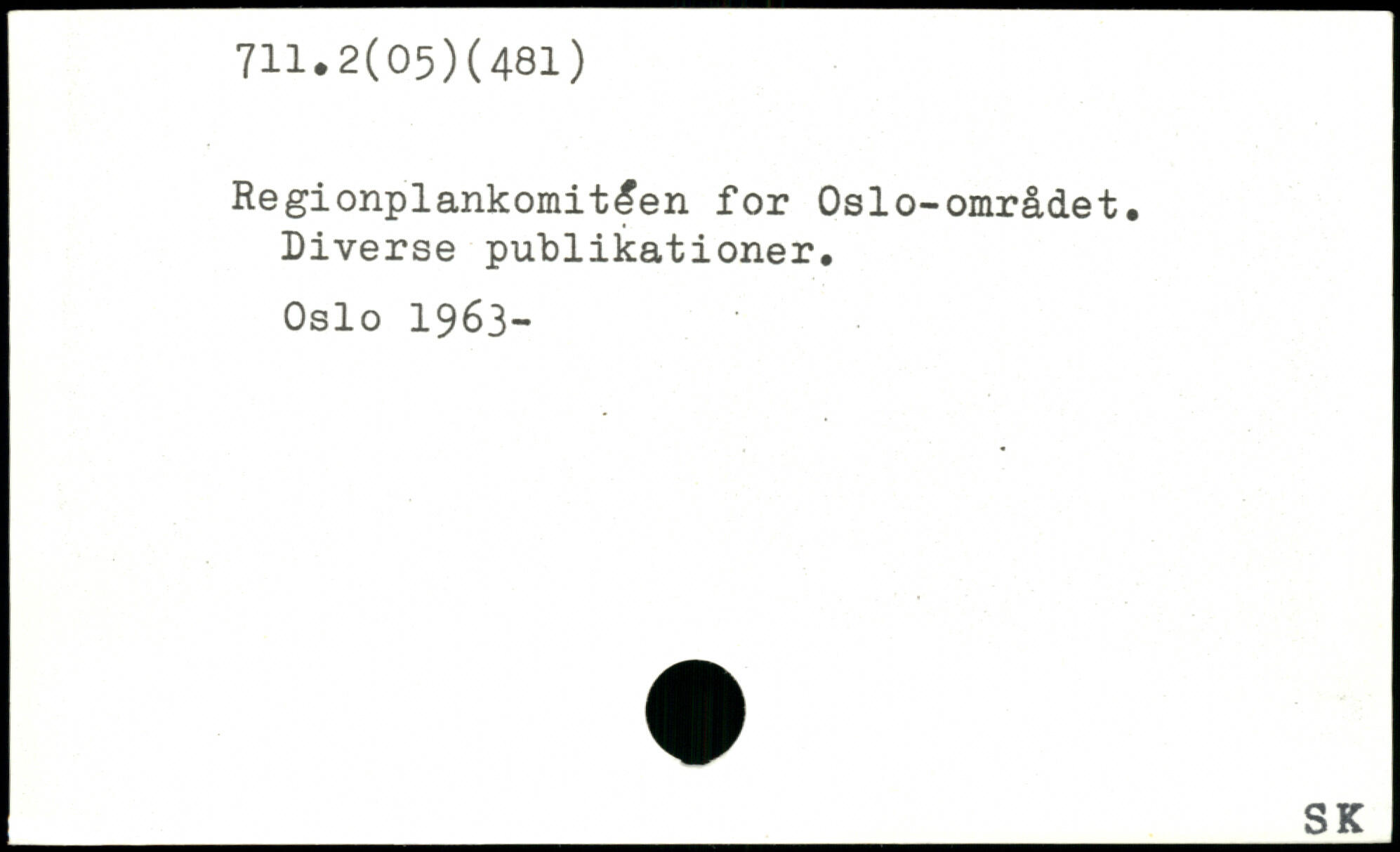 Regionplankomitéen for Oslo-området. Diverse publikationer, Oslo 1963-