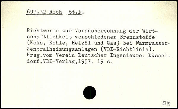 Richtwerte zur Vorausberechnung der Wirtschaftlichkeit verschiedener Brennstoffe (Koks, Kohle, Heizöl und Gas) bei Warmwasser-Zentralheizungsanlagen (VDI-Richtlinie). Hrs'gcvom