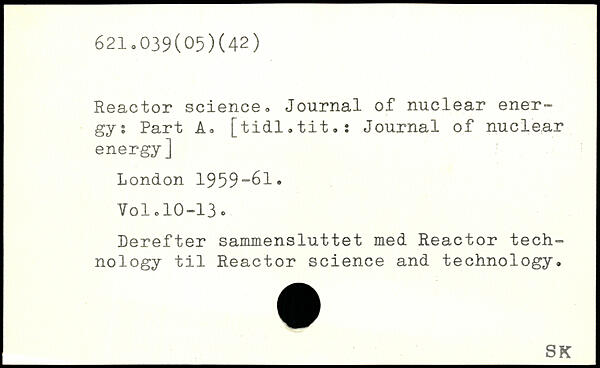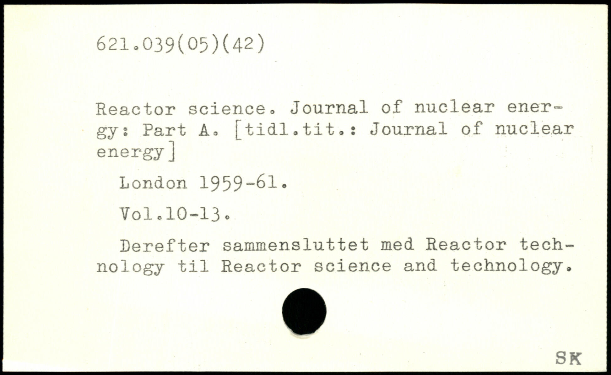Reactor science, Journal of nuclear energy: Part A, [tidl.tit.: Journal of nuclear energy]