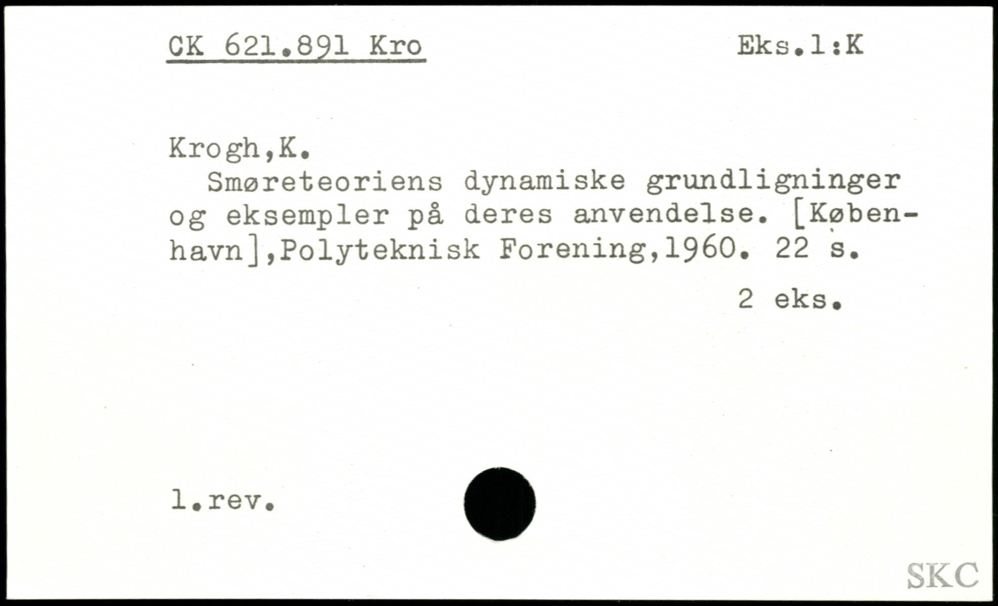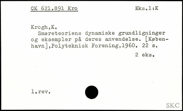 Smøreteoriens dynamiske grundligninger og eksempler på deres anvendelse. [København] ,Polyteknisk Forening,1960.