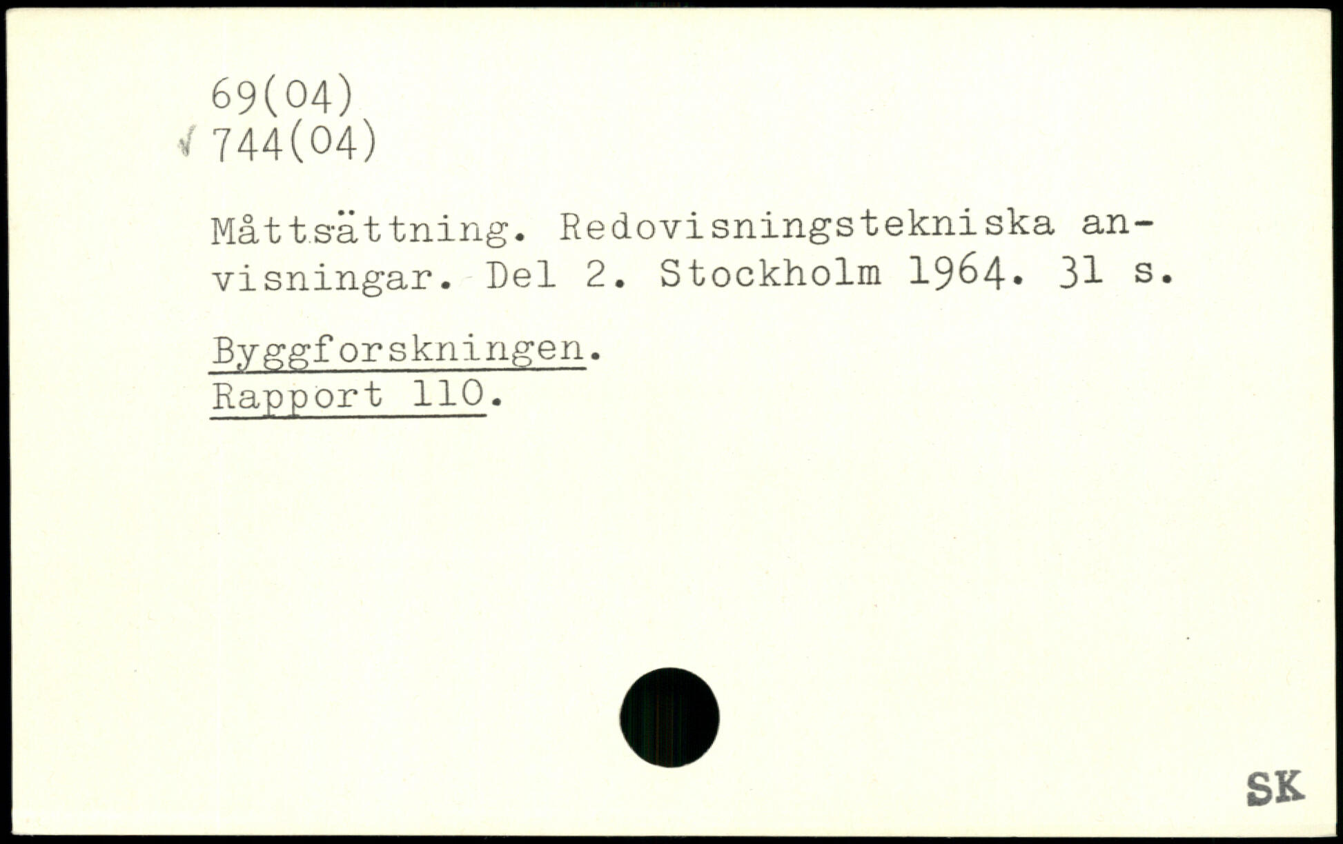 Måttsättiling. Redovisningstekniska an- I visningar. Del 2.