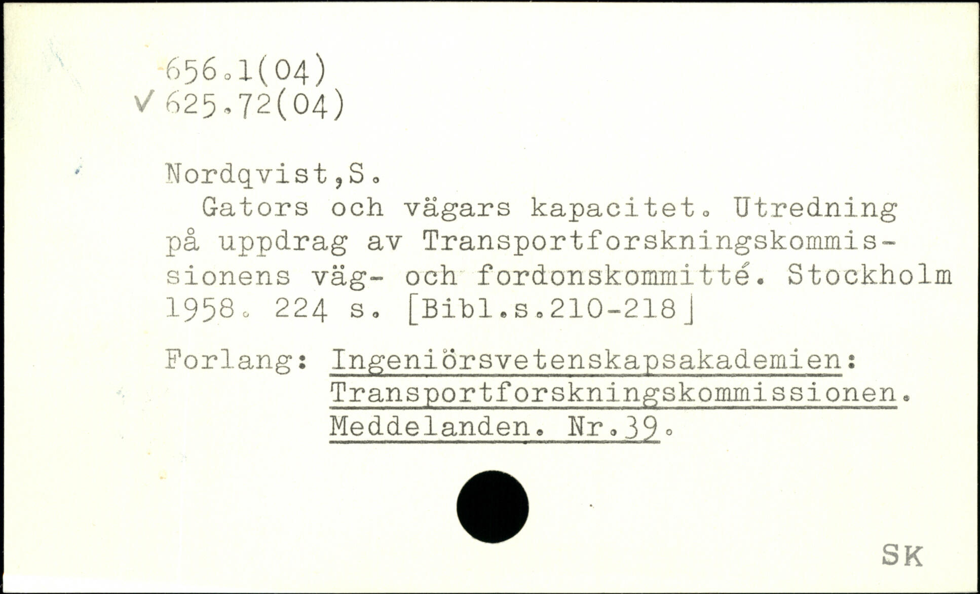 . Nordqvist?S, Gators och vägars kapacitet. Utredning på uppdrag av Transportforskningskommis-sionens väg- och fordonskommitté.